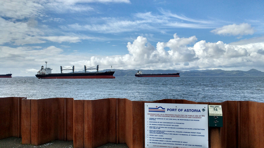 Our first major stop of the trip was in Astoria, Oregon. Astoria is right at the mouth of the Columbia River, and across the river from Washington state. There were lots of giant container ships in the port - it's really hard to get a sense of just how big they were from the photos.